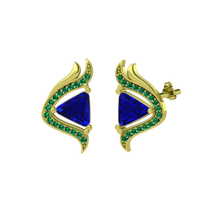 Lab safir ve yeşil kuvars 14 ayar altın küpe