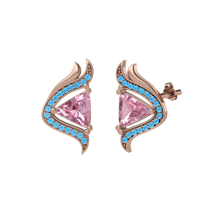 Pembe kuvars ve akuamarin 8 ayar rose altın küpe