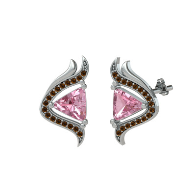 Pembe kuvars ve dumanlı kuvars 18 ayar beyaz altın küpe