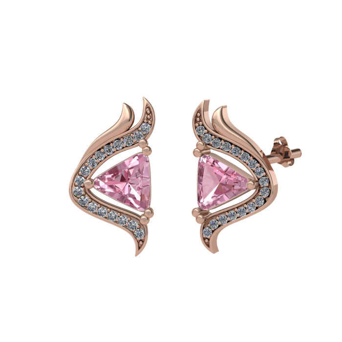 Pembe kuvars ve pırlanta 18 ayar rose altın küpe (0.306 karat)