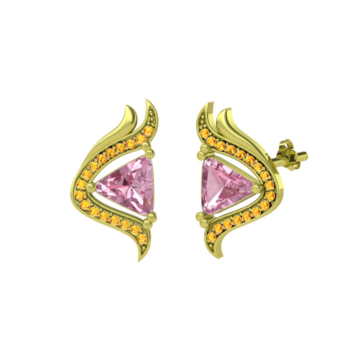 Pembe kuvars ve sitrin 18 ayar altın küpe