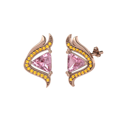 Pembe kuvars ve sitrin 18 ayar rose altın küpe