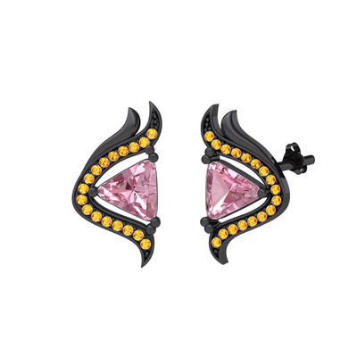 Pembe kuvars ve sitrin 925 ayar siyah rodyum kaplama gümüş küpe