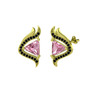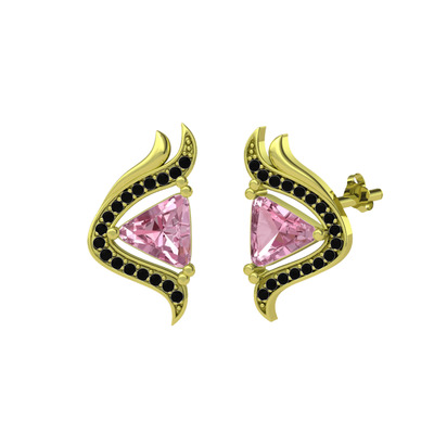Pembe kuvars ve siyah zirkon 8 ayar altın küpe