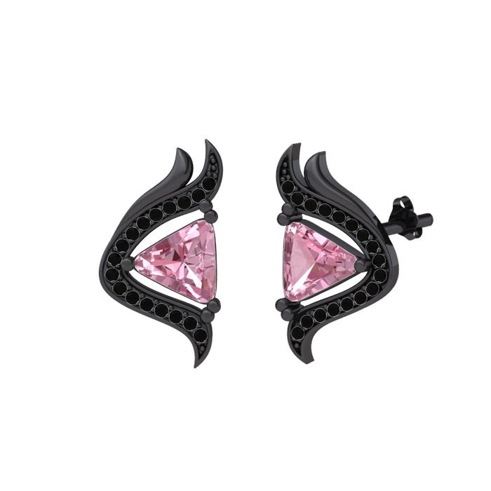 Pembe kuvars ve siyah zirkon 925 ayar siyah rodyum kaplama gümüş küpe