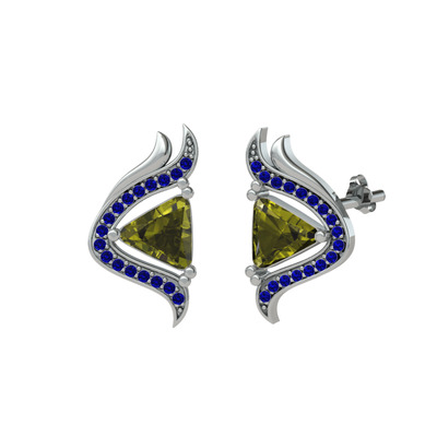 Peridot ve lab safir 8 ayar beyaz altın küpe