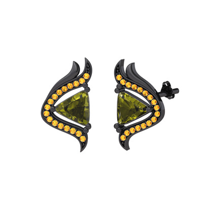 Peridot ve sitrin 925 ayar siyah rodyum kaplama gümüş küpe