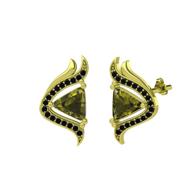 Peridot ve siyah zirkon 18 ayar altın küpe