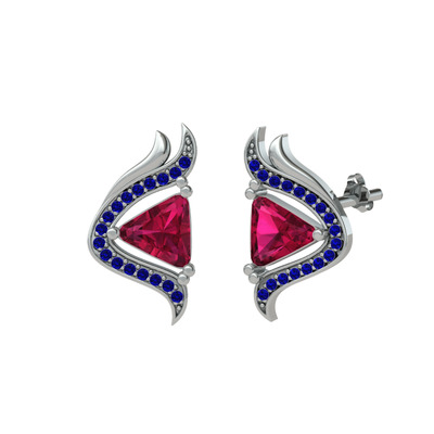 Rodolit garnet ve lab safir 18 ayar beyaz altın küpe