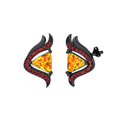 Sitrin ve garnet 925 ayar siyah rodyum kaplama gümüş küpe