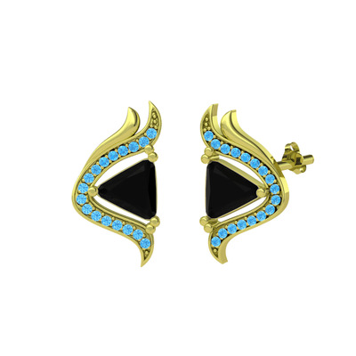 Siyah zirkon ve akuamarin 8 ayar altın küpe