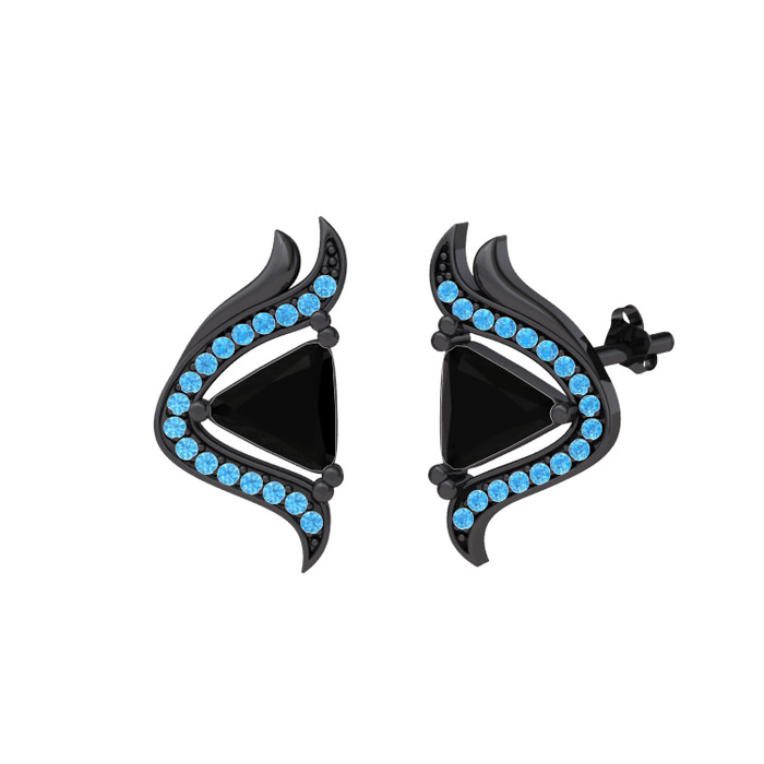 Siyah zirkon ve akuamarin 925 ayar siyah rodyum kaplama gümüş küpe