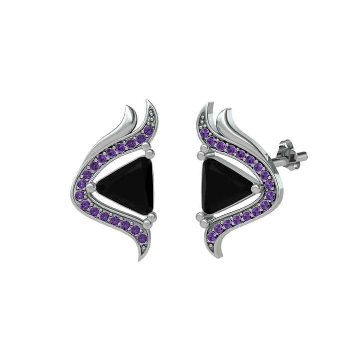 Siyah zirkon ve ametist 14 ayar beyaz altın küpe