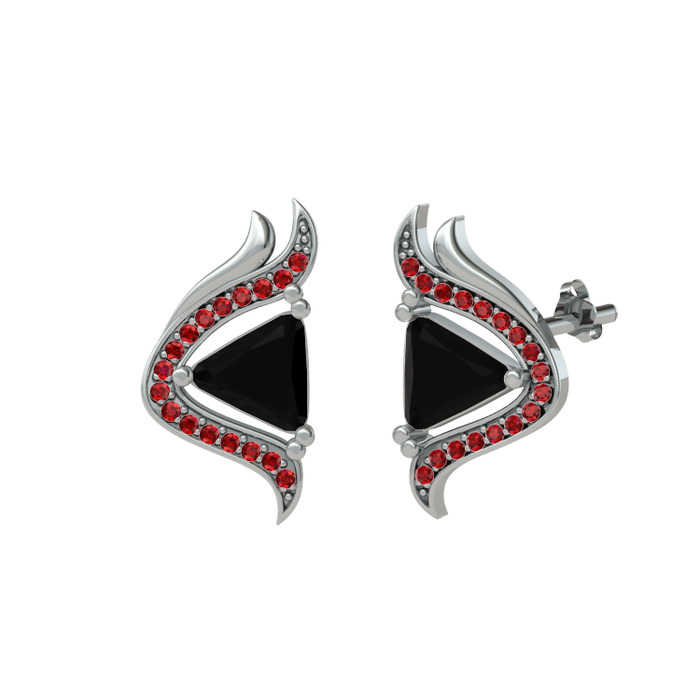 Siyah zirkon ve garnet 925 ayar gümüş küpe