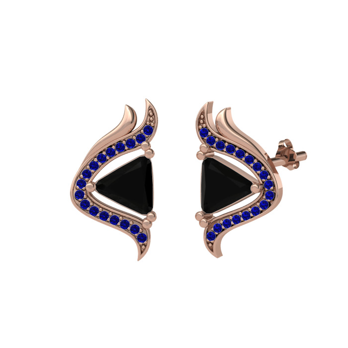 Siyah zirkon ve lab safir 925 ayar rose altın kaplama gümüş küpe