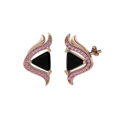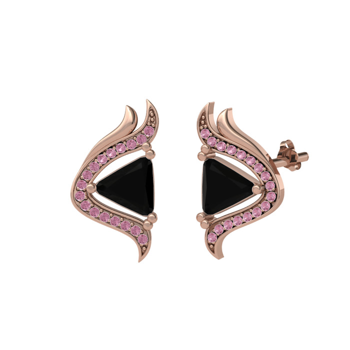 Siyah zirkon ve pembe kuvars 8 ayar rose altın küpe