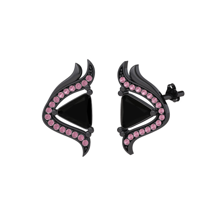 Siyah zirkon ve pembe kuvars 925 ayar siyah rodyum kaplama gümüş küpe