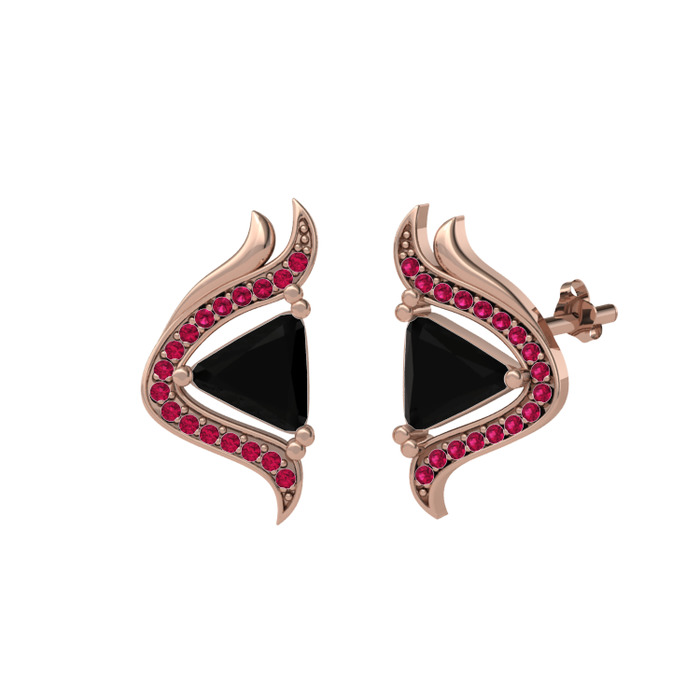 Siyah zirkon ve rodolit garnet 8 ayar rose altın küpe