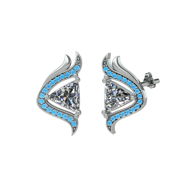 Swarovski ve akuamarin 8 ayar beyaz altın küpe