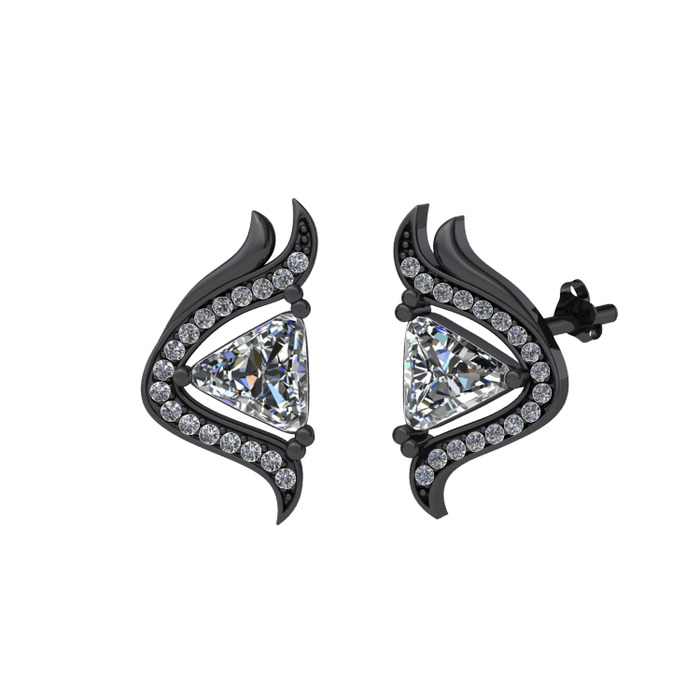 Swarovski ve pırlanta 925 ayar siyah rodyum kaplama gümüş küpe (0.306 karat)
