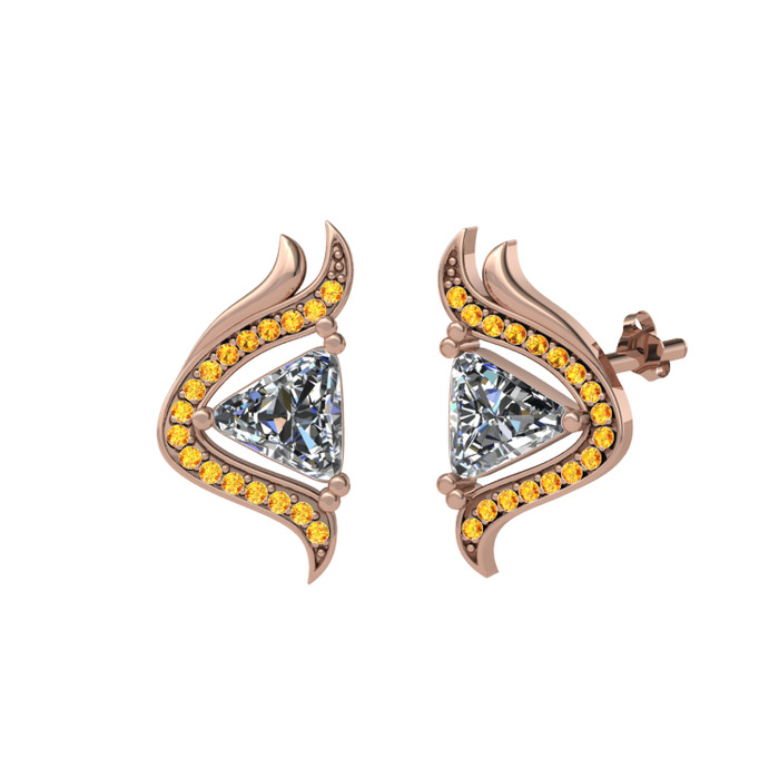 Swarovski ve sitrin 18 ayar rose altın küpe