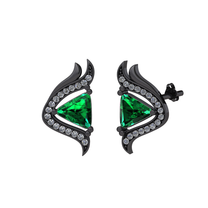 Yeşil kuvars ve beyaz zirkon 925 ayar siyah rodyum kaplama gümüş küpe