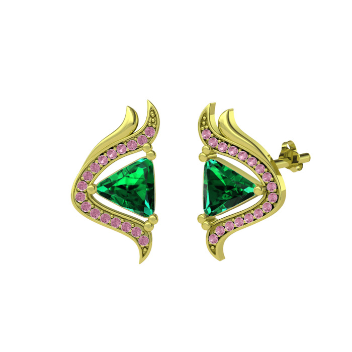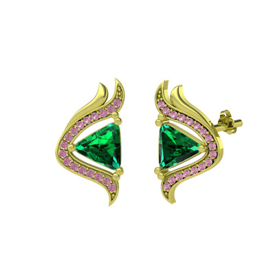 Yeşil kuvars ve pembe kuvars 18 ayar altın küpe