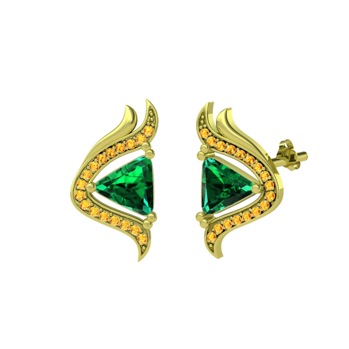 Yeşil kuvars ve sitrin 18 ayar altın küpe