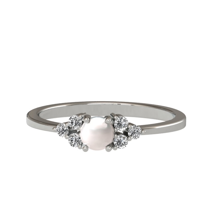 Inci ve beyaz zirkon 8 ayar beyaz altın yüzük