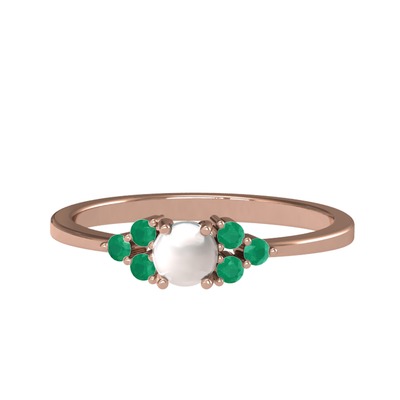 Inci ve kök zümrüt 925 ayar rose altın kaplama gümüş yüzük